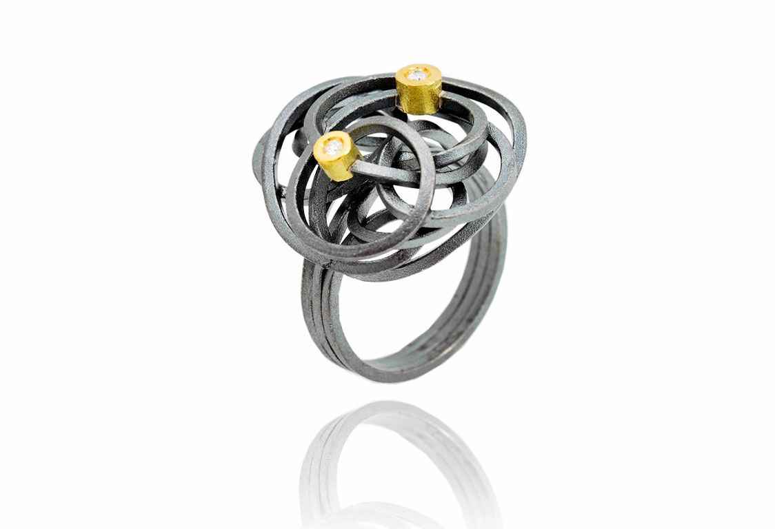 Anillo Plata Y Oro Arior Caos Con 2 Diamantes 3680726XU