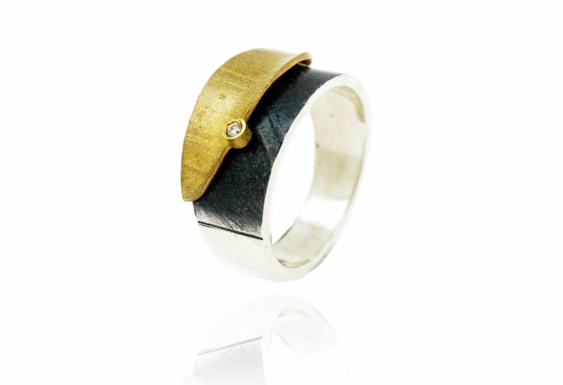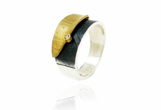 Anillo Plata Y Oro Arior Doble Fulla Con Diamante 3680683XSU