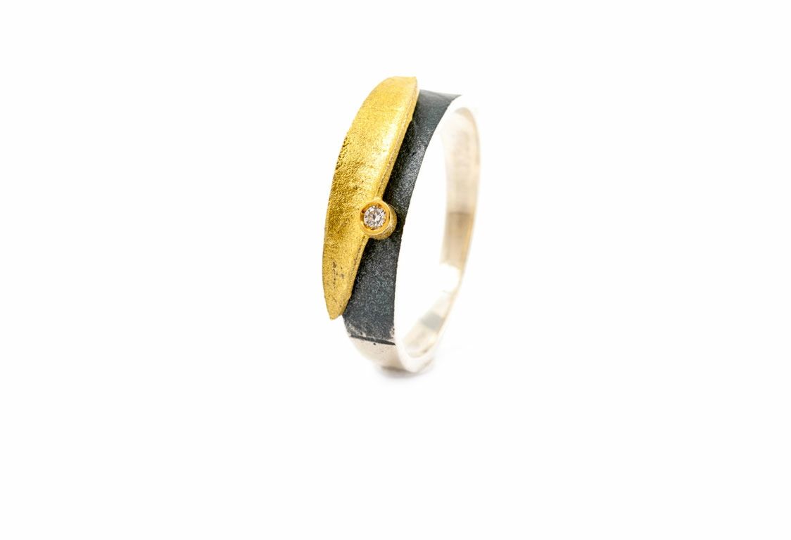 Anillo Plata Y Oro Arior Doble Fulla Diamante 3681049XU