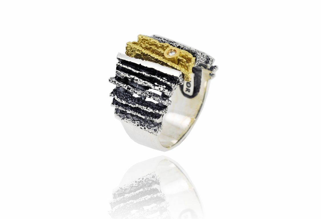 Anillo Plata Y Oro Arior Junc Grande Con Diamante 3680749XU