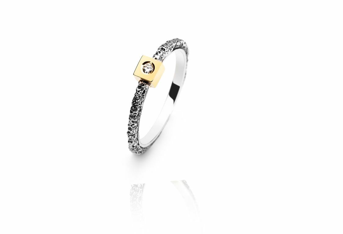 Anillo Plata Y Oro Arior Kora Texturizado Con Diamante 3680821XU