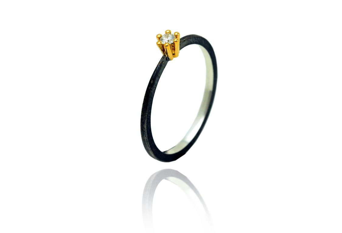 Anillo Plata Y Oro Arior Oxidada Nil Con Diamante 3680939XU