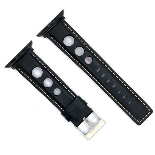 Correa Reloj Apple Watch Diloy Piel Negra 38mm C. Adaptador Acero Negro AWP355.01FN.38. Correa de reloj fabricada en piel negra y adaptador de acero negro. Correa de cuero estilo racing con perforaciones. Compatible con Apple Watch Series 1, 2, 3, 4, 5, 6, 7, 8, 9, SE, SE2 Ultra. Cierre hebilla. Ancho 38mm. Producto de excelente calidad, con garantía contrastada que asegura su fiabilidad y durabilidad. Ref AWP355.01FN.38