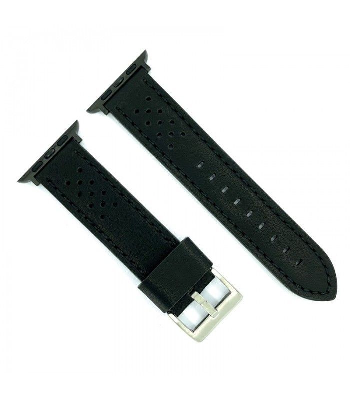 Correa Reloj Apple Watch Diloy Piel Negra 49mm C. Adaptador Acero Negro AW398.01FN.49