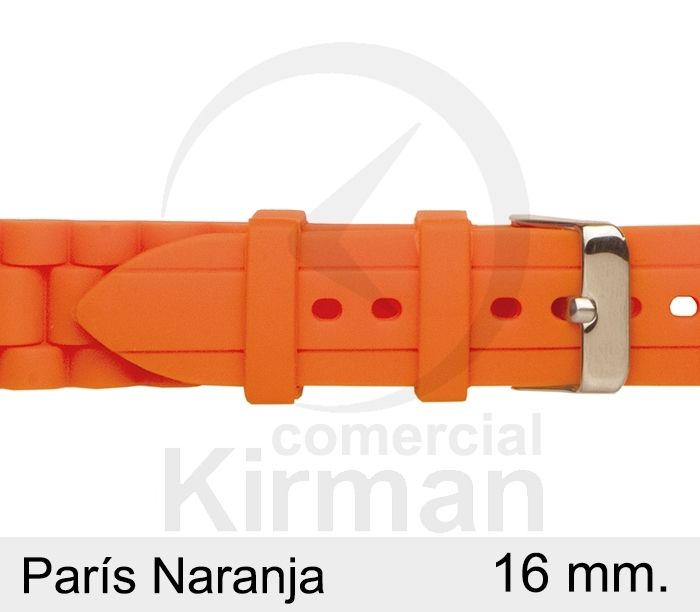 Correa Reloj Silicona 16x75/120mm 135149/16NA París Naranja Cierre Hebilla