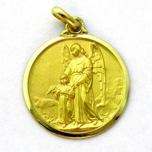 Medalla Oro 18kts Angel De La Guarda Bisel Pulido 22mm M1/4/14/22