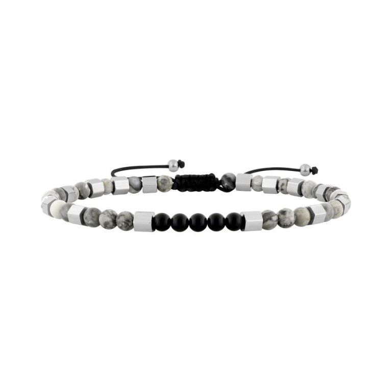 Pulsera Acero Dorado Argyor-MRM (AC)403376 Macramé Piedras Negras Y Grises