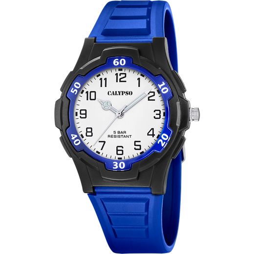 Reloj Calypso Hombre K5878/1 Sport Azul Analógico. Caja de plástico negro de 31,8mm de diámetro. Bisel negro. Correa de silicón azul. Cierre hebilla. Esfera blanca. Cristal mineral. Movimiento quartz. Sumergible 50m. 3 años de garantía. Ref K5878/1