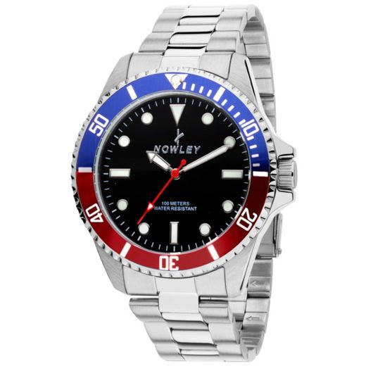 Reloj Nowley Hombre 8-7030-0-7 Acero Analógico. Caja de acero inoxidable de 44x44x12mm. Bisel azul bicolor rojo giratorio. Brazalete de acero inoxidable. Cierre desplegable de acero inoxidable. Esfera negra. Horas, minutos, segundos. Cristal mineral. Movimiento quartz. Sumergible 100m. 3 años de garantía. Ref 8-7030-0-7