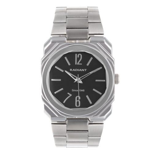 Reloj Radiant Hombre RA693203 Acero Analógico. Caja de acero de 40mm de diámetro. Bisel plateado. Brazalete de acero inoxidable. Cierre desplegable. Esfera negra. Cristal mineral. Movimiento quartz. Sumergible 50m. 3 años de garantía. Ref RA693203