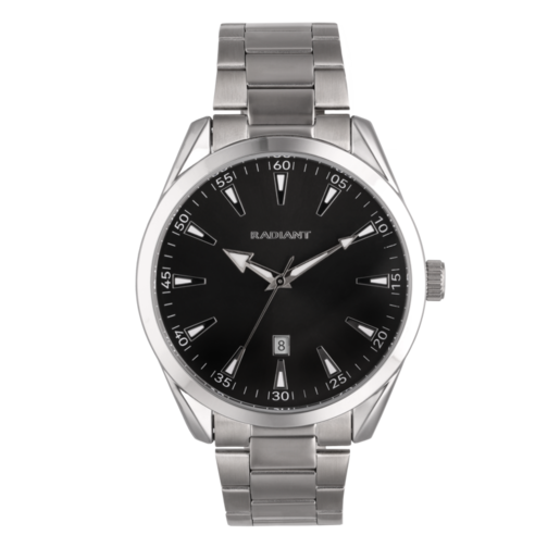 Reloj Radiant Hombre RA695201 Acero Analógico. Caja de acero de 42mm de diámetro. Bisel plateado. Brazalete de acero inoxidable. Cierre desplegable. Esfera negra. Multifunción, calendario. Cristal mineral. Movimiento quartz. Sumergible 50m. 3 años de garantía. Ref RA695201