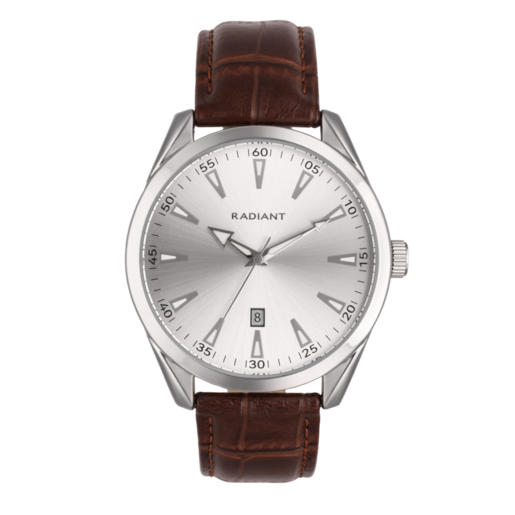 Reloj Radiant Hombre RA695206 Piel Marrón Acero Analógico. Caja de acero de 42mm de diámetro. Bisel plateado. Correa de piel marrón. Cierre hebilla. Esfera plateada. Multifunción, calendario. Cristal mineral. Movimiento quartz. Sumergible 50m. 3 años de garantía. Ref RA695206