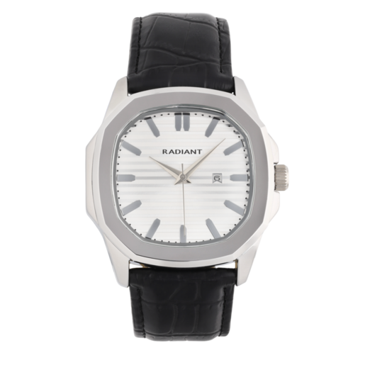 Reloj Radiant Hombre RA697201 Piel Negra Acero Analógico. Caja de acero de 43,5mm de diámetro. Bisel plateado. Correa de piel negra. Cierre hebilla. Esfera plateada. Multifunción, calendario. Cristal mineral. Movimiento quartz. Sumergible 50m. 3 años de garantía. Ref RA697201
