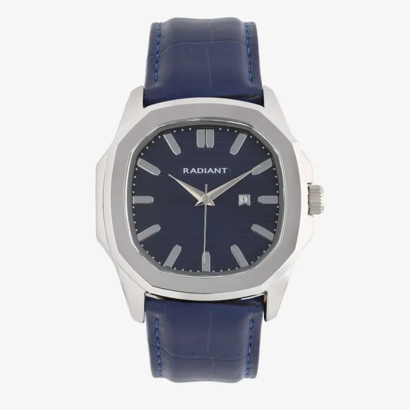 Reloj Radiant Mujer RA697202 Piel Azul Acero Analógico. Caja de acero de 43,5mm de diámetro. Bisel plateado. Correa de piel azul. Cierre hebilla. Esfera azul. Multifunción, calendario. Cristal mineral. Movimiento quartz. Sumergible 50m. 3 años de garantía. Ref RA697202