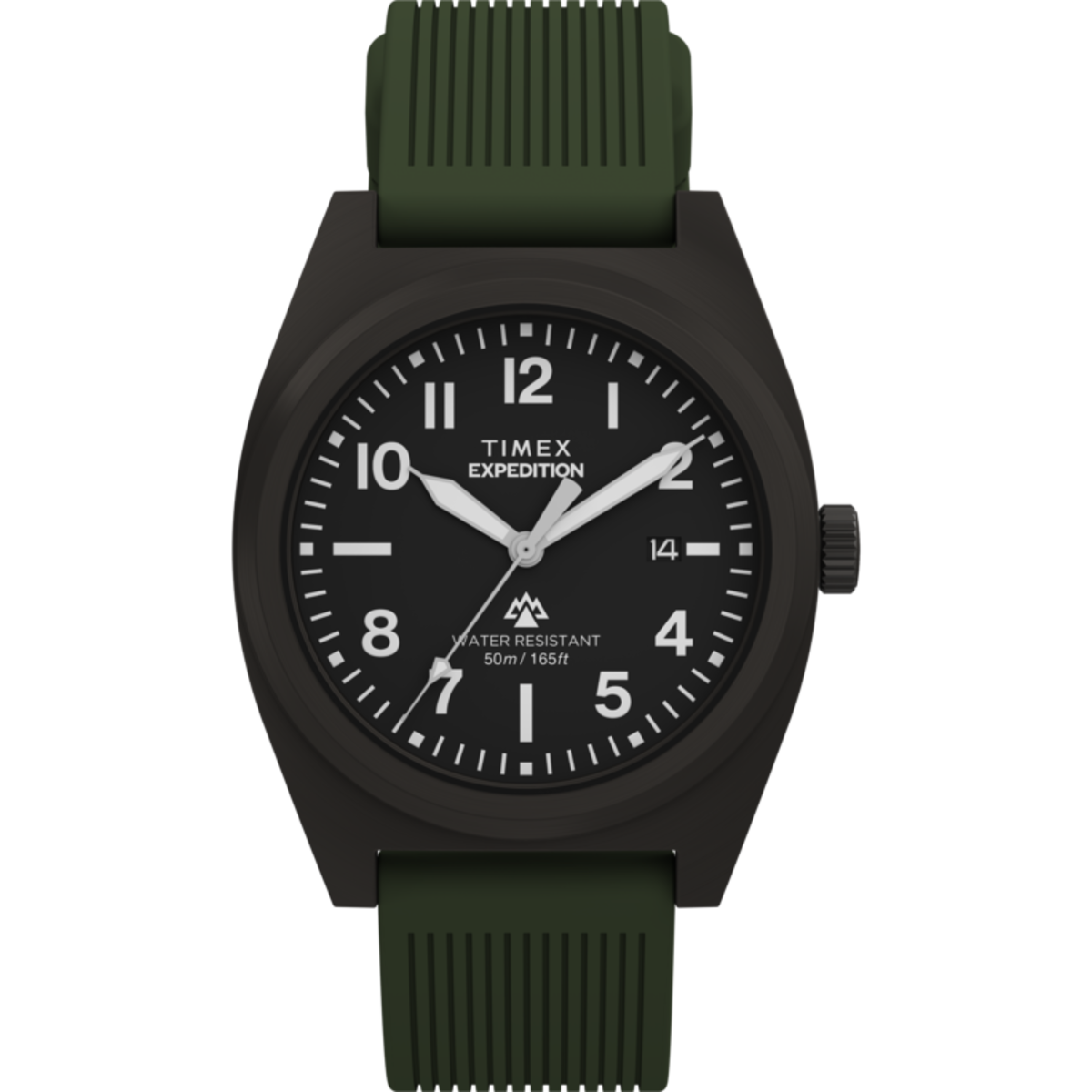 Reloj Timex Hombre TW2Y18000 Expedition North Latón Gun Metal Analógico. Caja de latón gun metal de 39mm de diámetro. Bisel negro. Correa de silicona negra. Cierre hebilla. Esfera negra. Cristal mineral. Movimiento quartz. Sumergible 50m. 3 años de garantía. Ref TW2Y18000